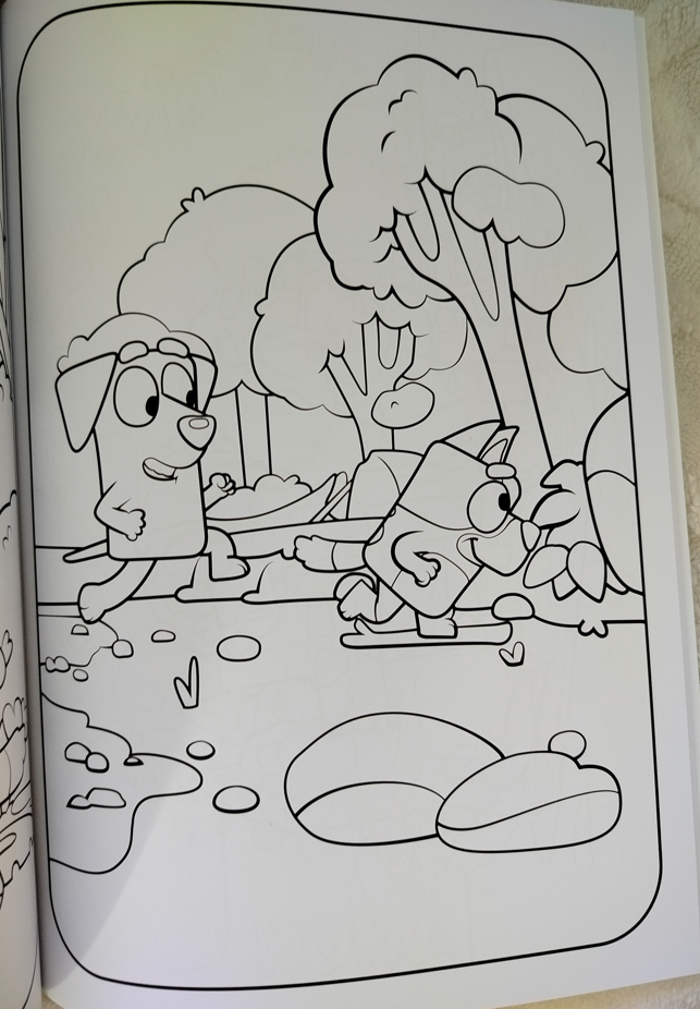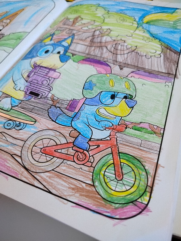 Nakładem Wydawnictwa Harperkids ukazała się kolorowanka Wielkie podwórko. Bluey. Kiedy tylko ją zobaczyłam, wiedziałam, że muszę ją kupić. Już mamy z tej serii kolorowankę Ale zabawa i córka była nią zachwycona. Ta kolorowanka wyróżnia się objętością – ma aż 64 strony. Dzięki temu dziecko może korzystać z niej długo.