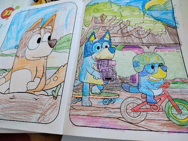 Ta książka to idealny wybór, jeśli szukacie kreatywnego, angażującego i bezpiecznego zajęcia dla najmłodszych. Ilustracje są piękne i przyjazne, a postaci – znane i kochane – jeszcze bardziej zachęcają dzieci do sięgnięcia po kredki. Zeszyt ma miękką okładkę, a papier został dopasowany do codziennego użytkowania przez małe rączki. Kolorowanka może angażować nie tylko dziecko, ale i całą rodzinę. Starsze rodzeństwo, mama czy tata mogą dorzucić swoje pomysły. Kolorowanie jest świetnym pretekstem do rozmowy o przygodach Bluey i Bingo, a także do tworzenia własnych, nowych historii.
